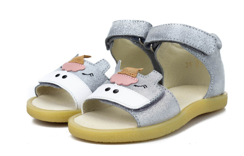 Mido - Sandały dziecięce Jednorożec Szary Satyna