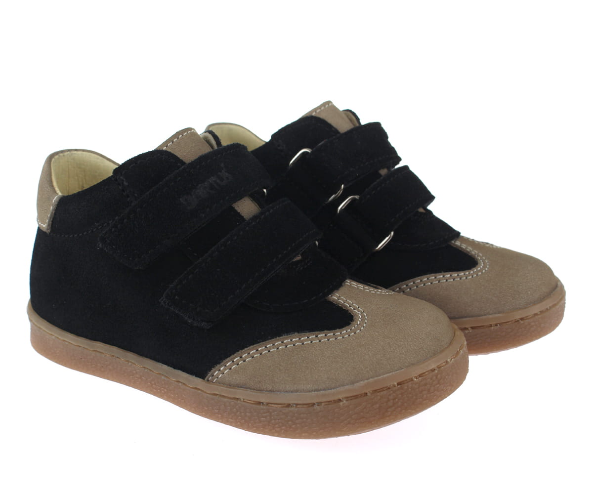 Bartuś - Skórzane Półbuty 190/RZ WELUR CZARNY/ BEŻ