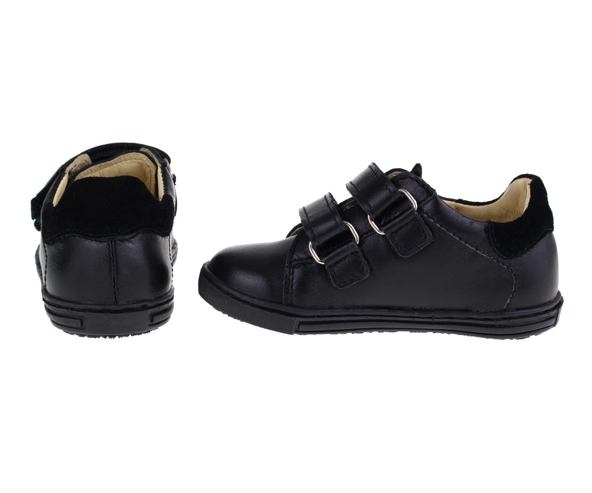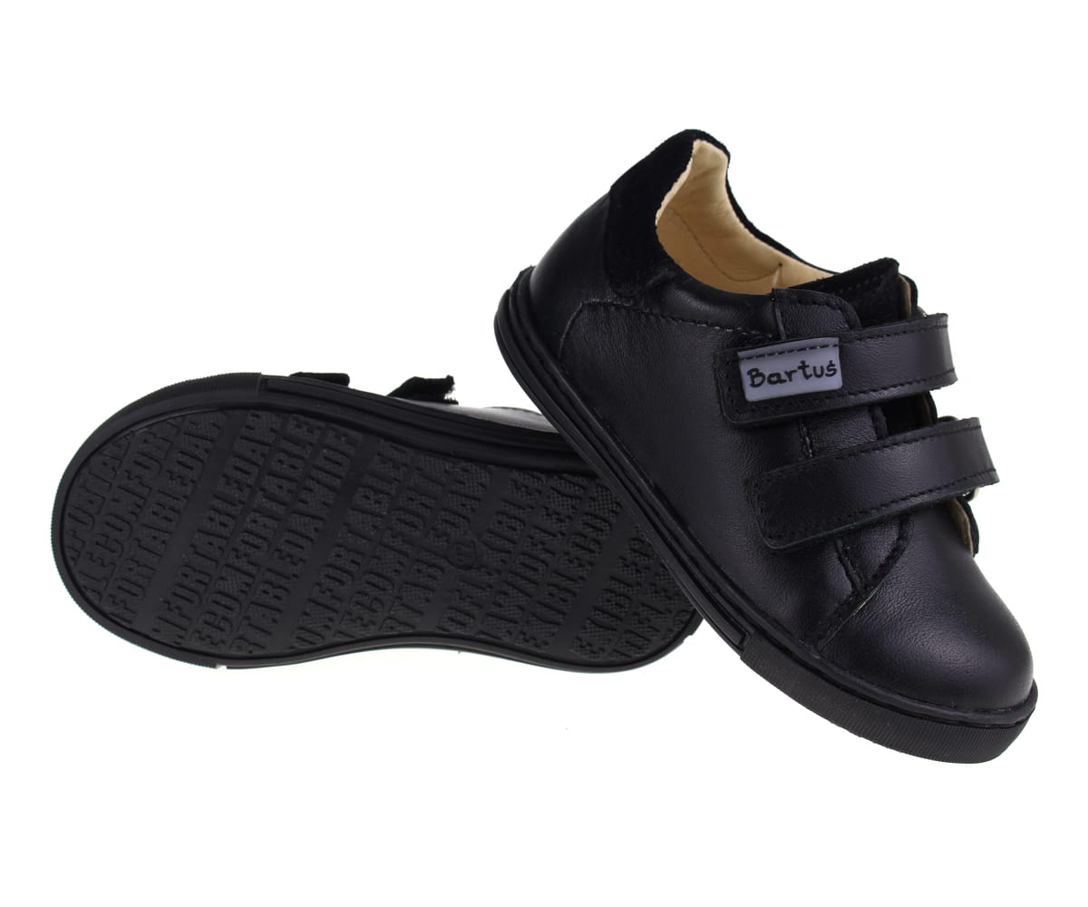 Dziecięce półbuty w całości wykonane ze skóry naturalnej, wyprodukowane od początku do samego końca w naszej firmie. Podwójna rzepka to bezproblemowe zapięcie dla Twojej pociechy oraz dodatkowo idealne dopasowanie do każdej stopy. Wewnątrz profilowana, skórzana wkładka , która zapewnia prawidłowy rozwój stopy, z możliwością wyjmowania, co pozawala utrzymać czystość wewnątrz buta. Okrągły nosek umożliwia swobodnie rosnąć dziecięcym paluszkom. Usztywniony zapiętek, który uchroni przed koślawieniem stóp. Elastyczna podeszwa posiada antypoślizgowy bieżnik.
