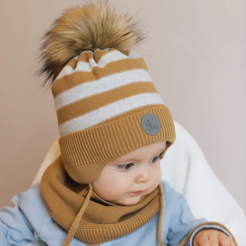 Paskom w tym sezonie mówimy TAK. Dobrym wyborem będzie wiązana i ocieplana czapeczka z pomponem. Do czapki proponujemy dopasowanie delikatnego kominka.