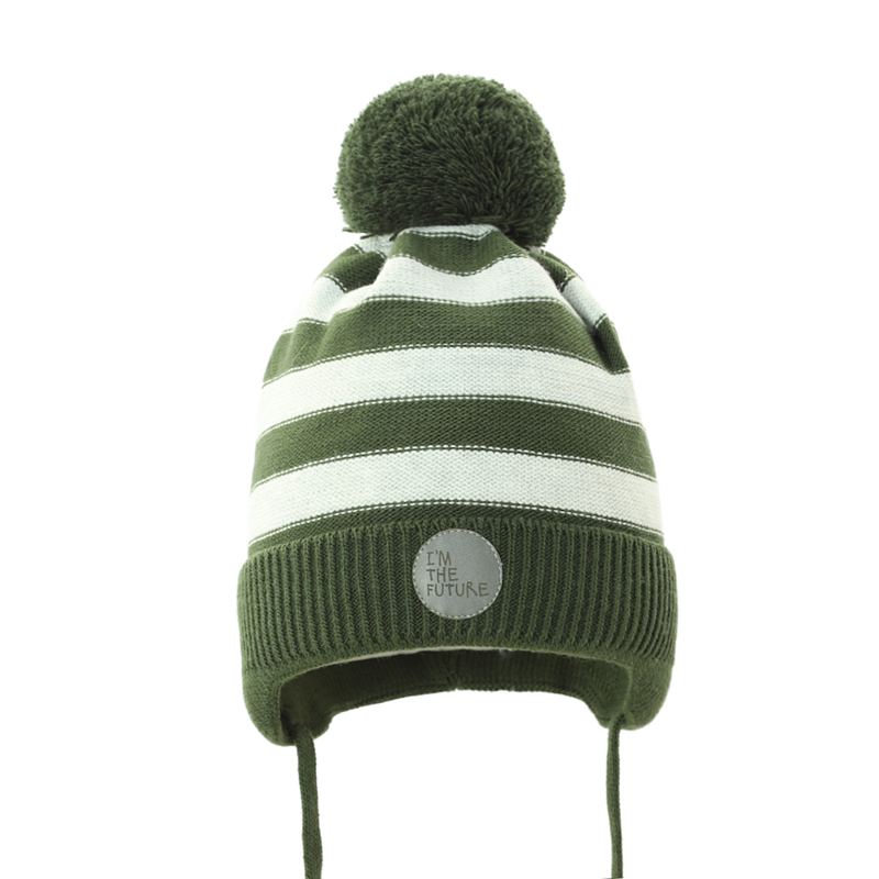 Delikatna czapeczka zimowa dla chłopca, zawiązywana pod szyją.