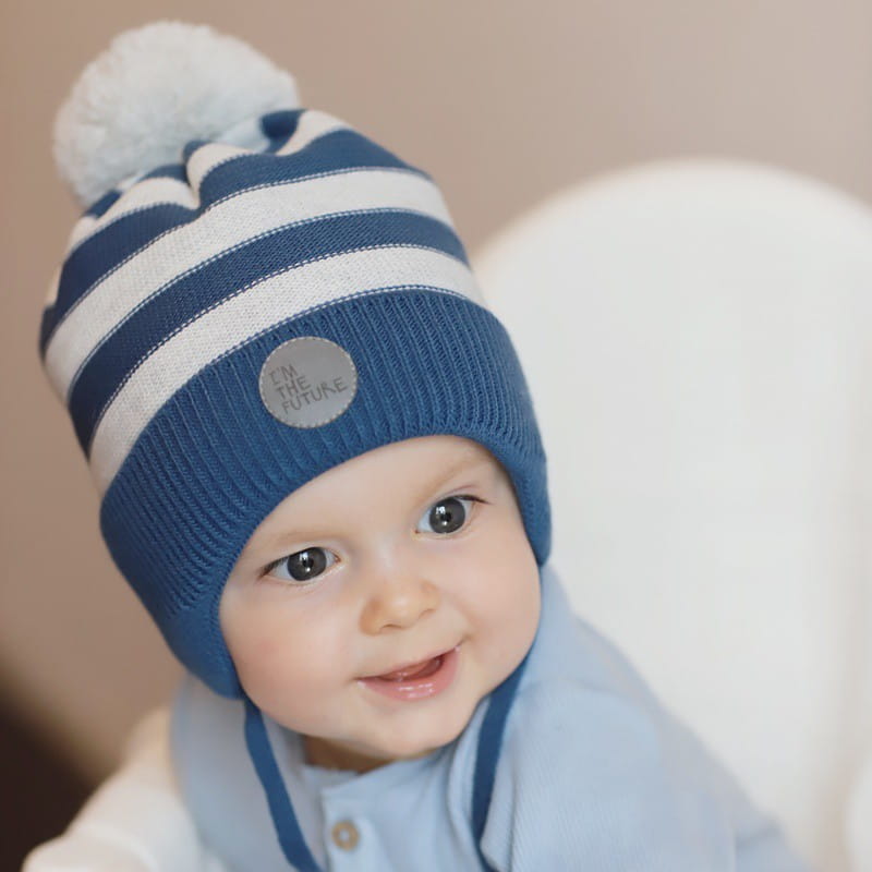 Delikatna czapeczka zimowa dla chłopca, zawiązywana pod szyją.