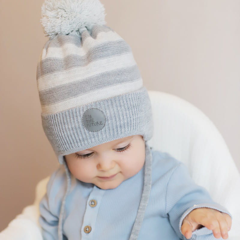 Delikatna czapeczka zimowa dla chłopca, zawiązywana pod szyją.