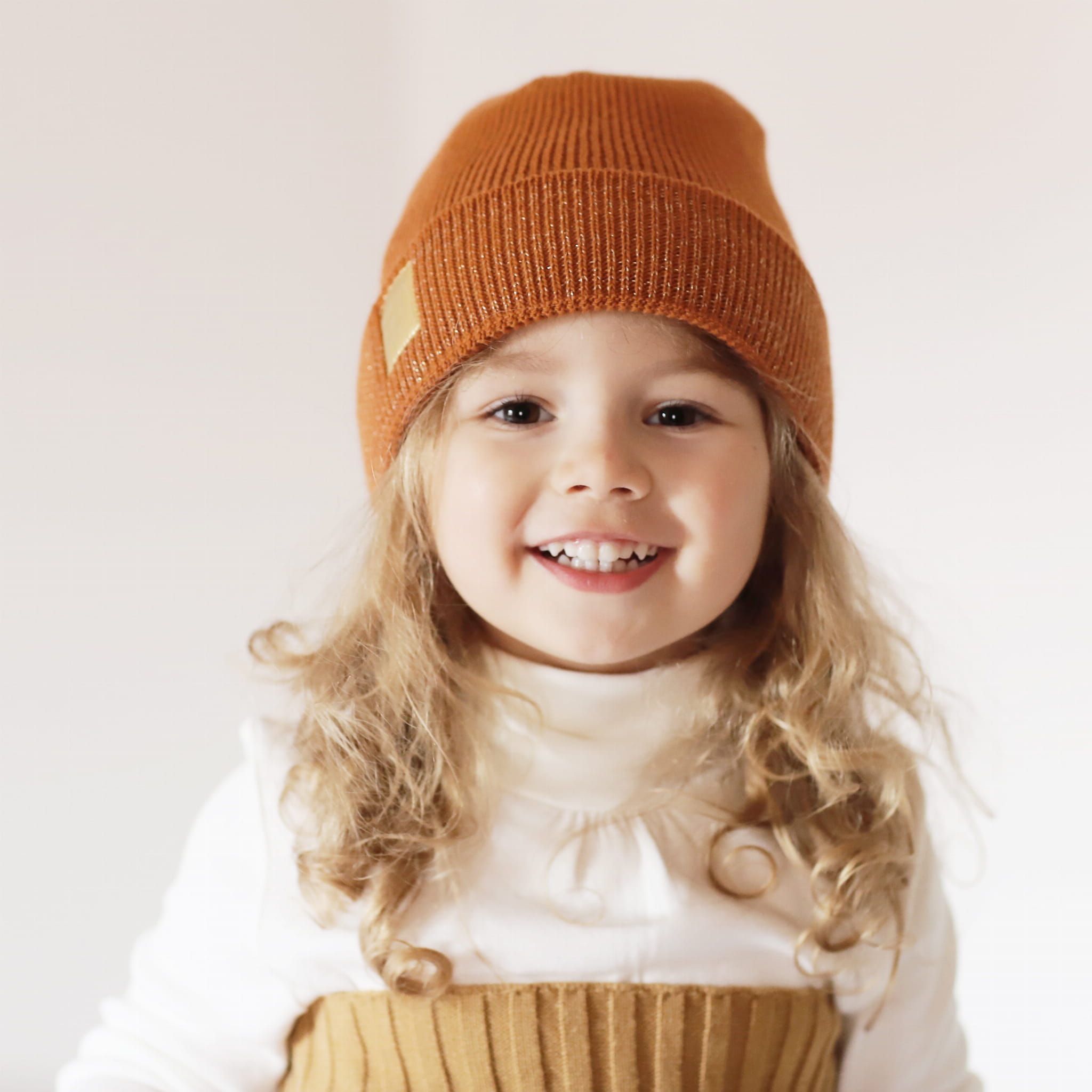 Prosta i elegancka czapeczka dla dziewczynki ze złotymi dodatkami w stylu GLAMOUR. Świetna dla mamy i córki.