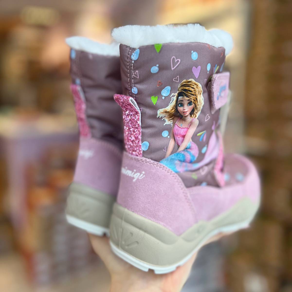 Pięknie śniegowce dziewczęce z puszystą i ciepłą wyściółką oraz membraną zapewnią ciepło i suchość dziewczęcym stopom. Cholewka została wykonana ze skóry naturalnej połączonej z wodoodporną tkaniną.