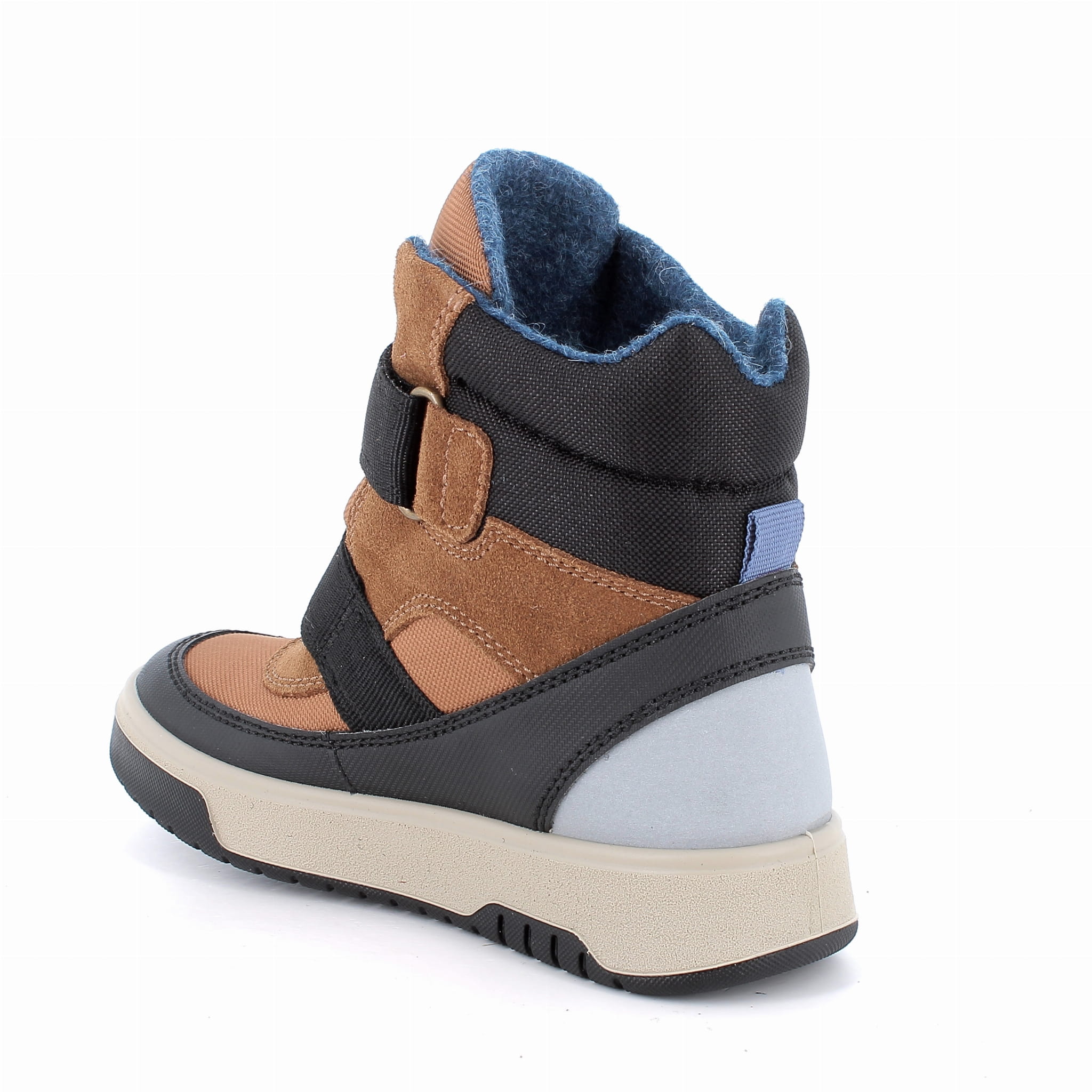 Primigi zimowe buty dziecięce, wykonane ze skóry naturalnej zamszowej oraz tkaniny tekstylnej Zapinane na dwa rzepy i ocieplone. W obuwiu zastosowano membranę GORE-TEX® , która jest wiatroszczelna oraz oddychająca. Dzięki niej buty zachowują swoją wyjątkową właściwość użytkowania w trudnych warunkach pogodowych. W produkcji użyto technologię Shock Absorber, która pełni funkcję amortyzatora w kozakach, chroniąc staw skokowy dziecka.
