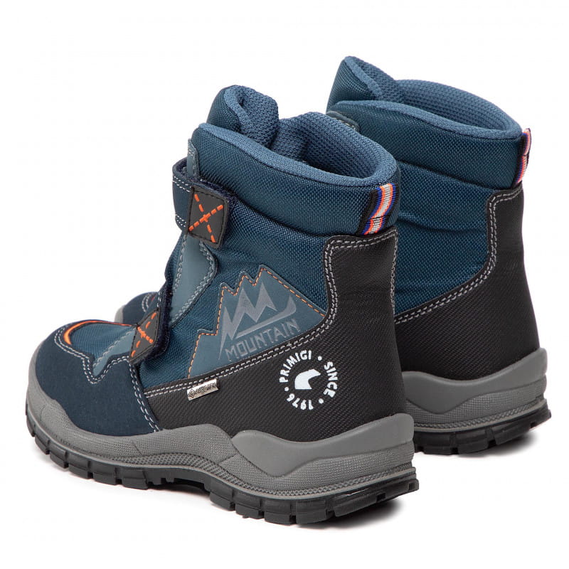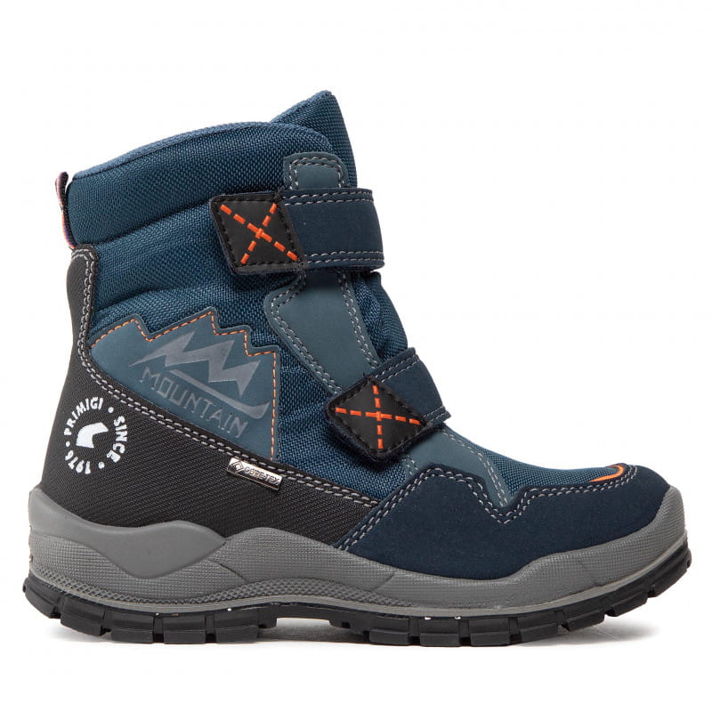 Primigi zimowe buty dziecięce, wykonane ze skóry naturalnej - zamsz oraz tkanina tekstylna. Zapinane na dwa rzepy i ocieplone. W obuwiu zastosowano membranę GORE-TEX® , która jest wiatroszczelna oraz oddychająca. Dzięki niej buty zachowują swoją wyjątkową właściwość użytkowania w trudnych warunkach pogodowych. W produkcji użyto technologię Shock Absorber, która pełni funkcję amortyzatora w kozakach, chroniąc staw skokowy dziecka.