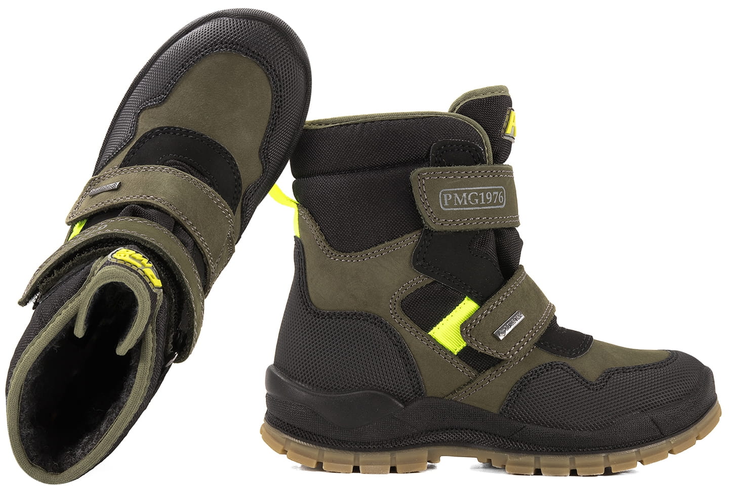 Primigi zimowe buty dziecięce, wykonane ze skóry naturalnej - nubuk oraz tkanina tekstylna. Zapinane na dwa rzepy i ocieplone. W obuwiu zastosowano membranę GORE-TEX® , która jest wiatroszczelna oraz oddychająca. Dzięki niej buty zachowują swoją wyjątkową właściwość użytkowania w trudnych warunkach pogodowych. W produkcji użyto technologię Shock Absorber, która pełni funkcję amortyzatora w kozakach, chroniąc staw skokowy dziecka.