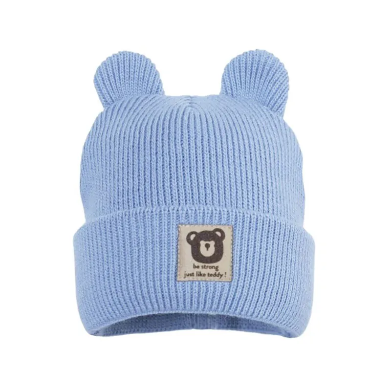 Czapeczka miękka i cieplutka dla małego dziecka. Wykończona od wewnątrz bawełnianą podszewką. Podwójny ściągacz dobrze zabezpiecza uszy dziecka przed chłodem.