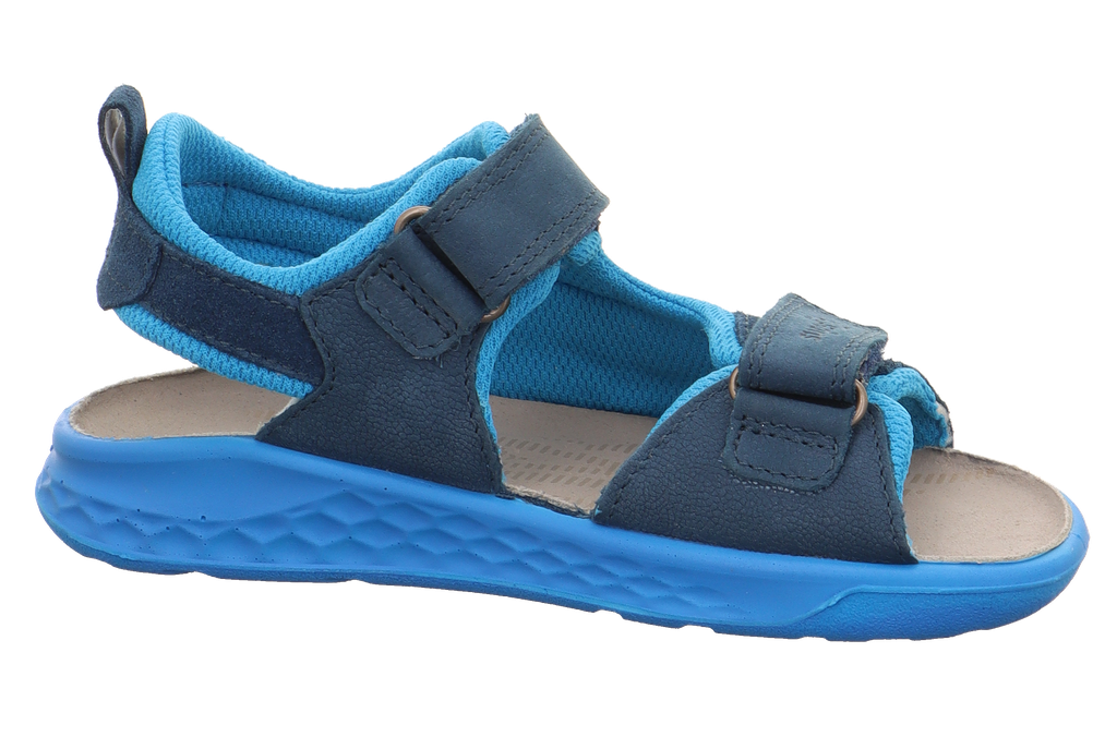 Niezwykle wygodne sandały austriackiego producenta Superfit. Sandały z odkrytymi palcami dla chłopca z miękką i elastyczną podeszwą. Zapinane na dwa rzepy. Pierwsza regulacja w palcach a druga przy kostce. Pozwala to na dokładne dopasowanie obuwia do stopy dziecka. W całości wykonane ze skóry naturalnej.