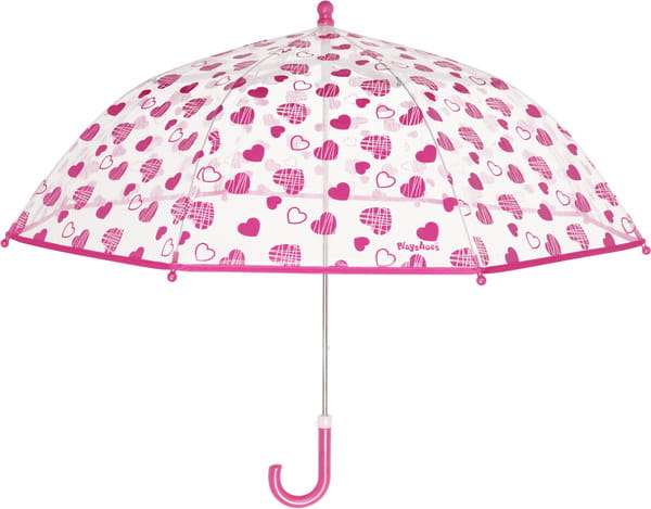 Przezroczysta parasolka w różowe serduszka spodoba się każdej dziewczynce. Idealnie sprawdzi się na spacerach w deszczowe dni.